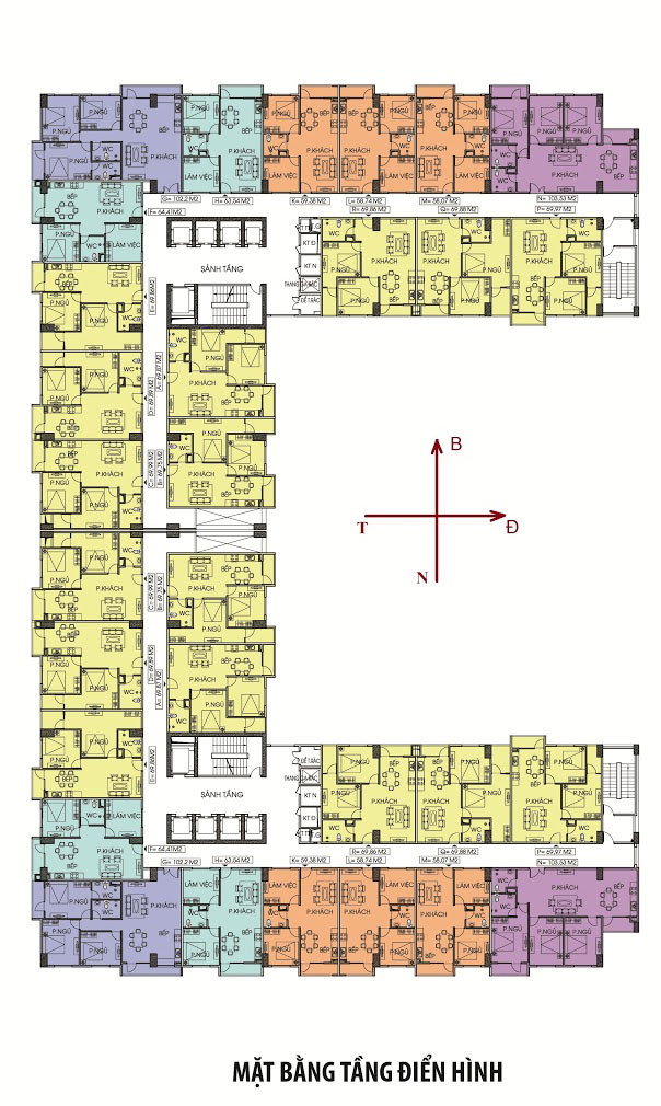 Sơ đồ mặt bằng tầng điển hình của chung cư Đại Kim Building với các căn hộ đa dạng