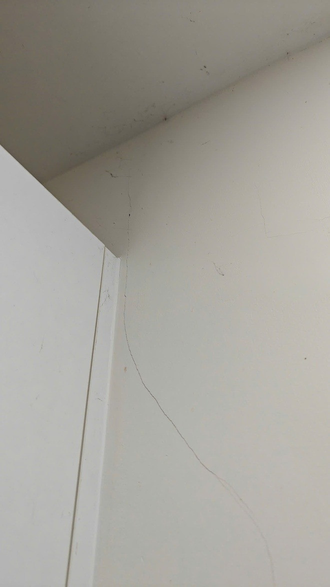 Trở về nhà sau vài giờ, bà Hiền phát hiện căn hộ của gia đình xuất hiện 4 vết nứt mới trên tường, điều chưa từng xảy ra kể từ khi bà chuyển về sinh sống tại đây vào năm 2021. Tương tự, anh Kim Nam, 37 tuổi, cư dân tại tầng 15 của chung cư Diamond Riverside Quận 8, cho biết một ngày sau trận rung lắc, khi dọn dẹp nhà cửa, anh đã phát hiện nhiều vết nứt trên tường.