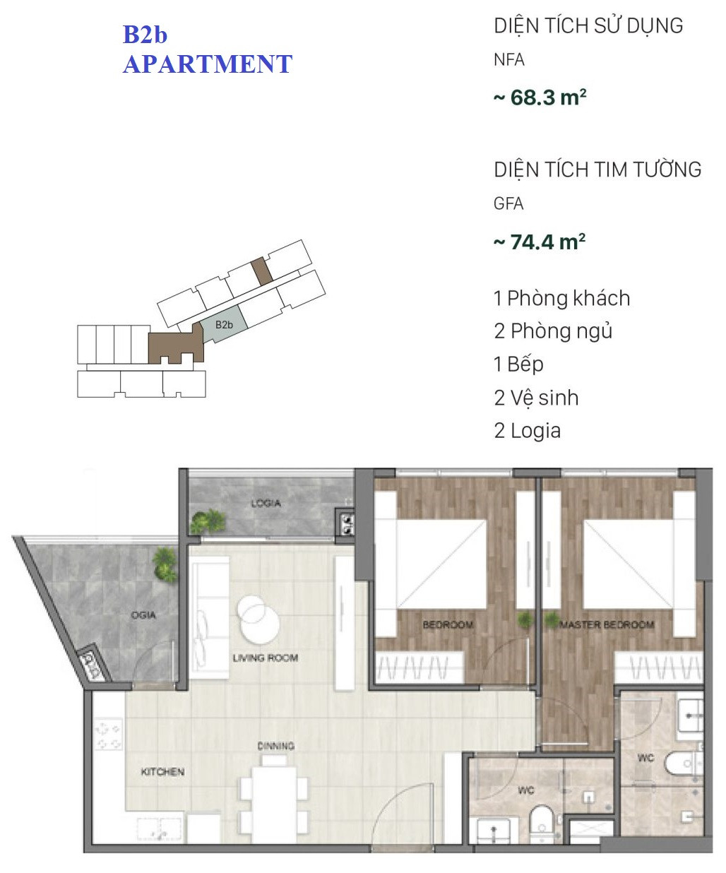 Thiết kế căn hộ 2 phòng ngủ mẫu B2b chung cư Eco Xuân Lái Thiêu