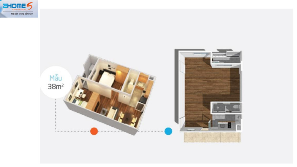 Mặt bằng căn hộ mẫu 38m2 tại chung cư Ehome S