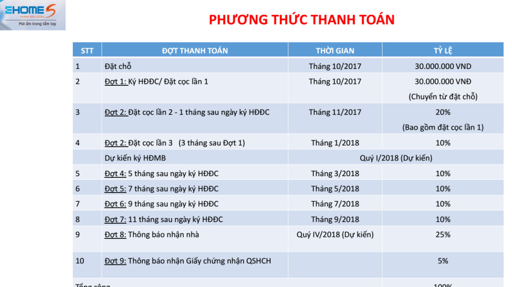 Giá bán và phương thức thanh toán chung cư ehomes nam sài gòn