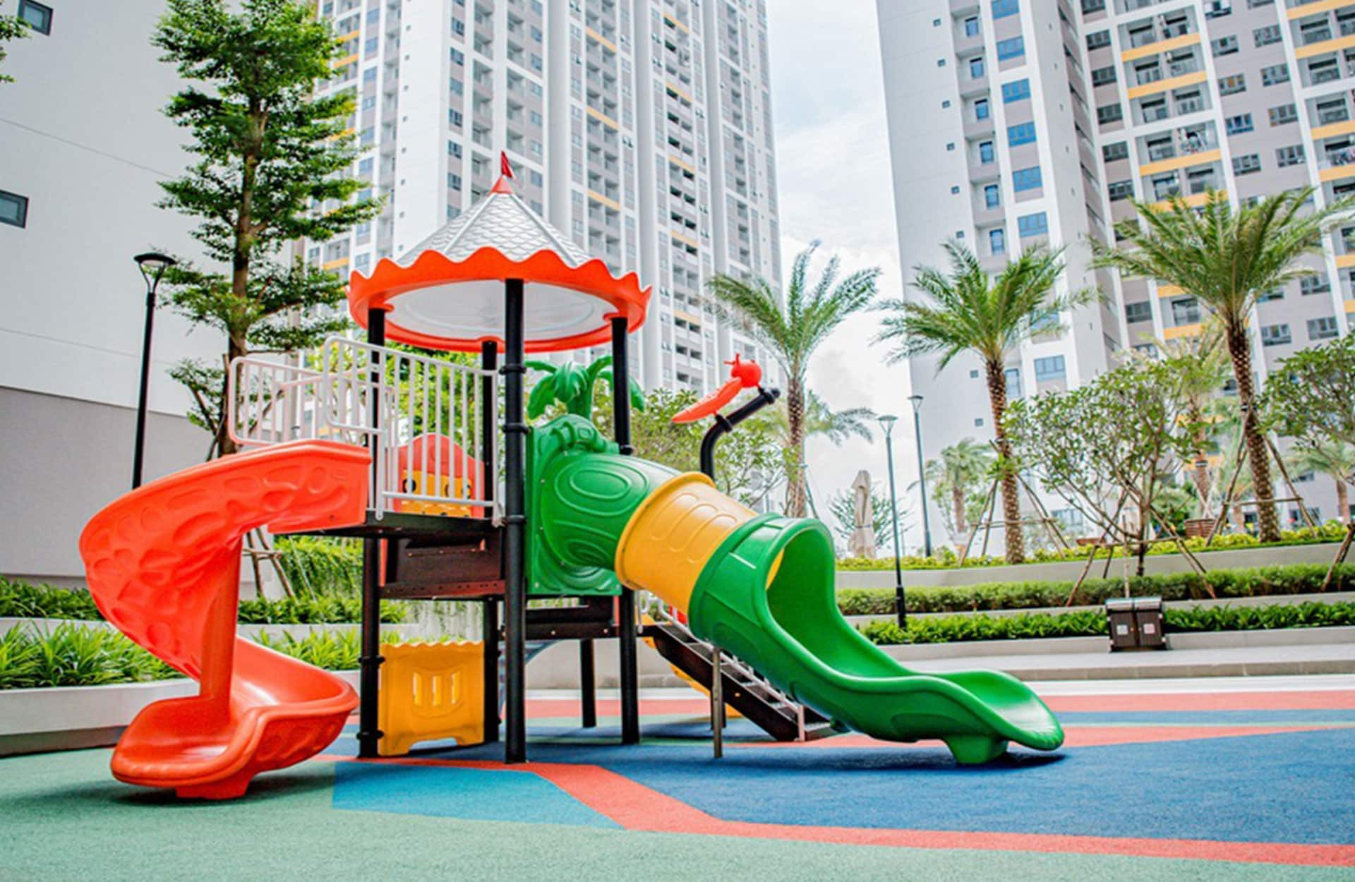 Chung cư Florita Hưng Thịnh Quận 7 đặc biệt chú trọng đến việc phát triển toàn diện cho trẻ em. Khu vui chơi trẻ em ngoài trời được thiết kế sinh động, an toàn với nhiều trò chơi vận động, khuyến khích sự phát triển thể chất và tinh thần của các bé. Đây cũng là điểm giao lưu, kết nối giữa các gia đình trẻ trong cộng đồng.