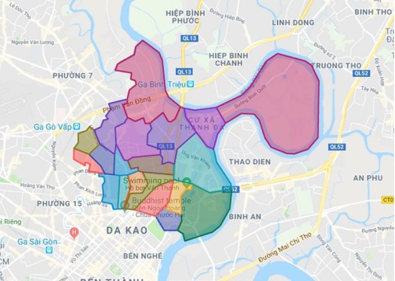 Bản đồ khu vực Bình Thạnh, thể hiện tiềm năng phát triển của các dự án chung cư