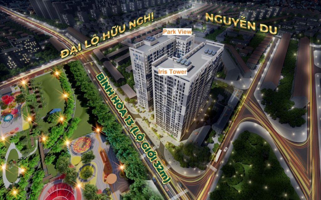 Tổ hợp dự án chung cư Hòa Bình Thuận An, bao gồm hai tòa tháp là Park View và Iris Tower, được phát triển trên khu đất rộng hơn 7.269,2m2. Chủ đầu tư uy tín là Công ty CTCP Tổng Công ty Đầu tư Phát triển Đô thị Sài Gòn đã kiến tạo nên 880 căn hộ để ở cùng khối đế thương mại (shophouse). Hai tòa tháp này có chiều cao 23 tầng, cung cấp một giải pháp nhà ở hiện đại ngay tại trung tâm đô thị năng động này.