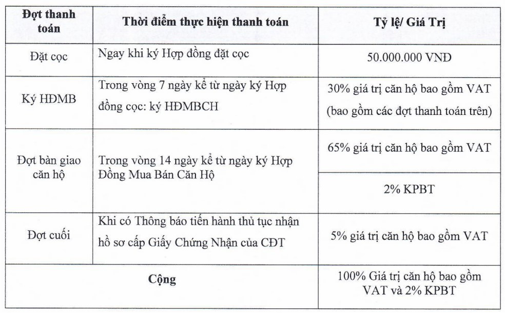 Sơ đồ phương thức thanh toán chuẩn cho căn hộ Park View Iris Tower