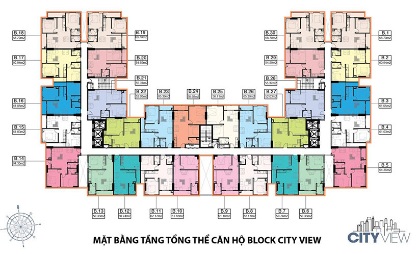- DTXD: 68.70m2 – DTTT: 64.57m2 (Vị trí: 01, 18, 19, 30)