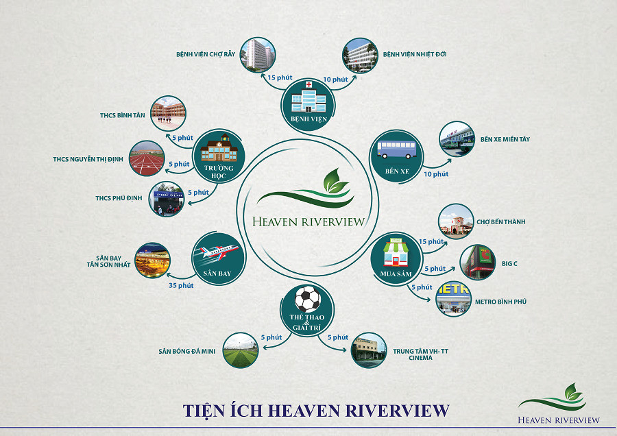 Khả năng di chuyển từ Heaven Riverview đến các khu vực trọng điểm: