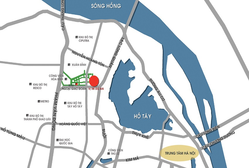 Bản đồ vị trí chiến lược của dự án chung cư Ngoại Giao Đoàn Hà Nội, kết nối thuận tiện.