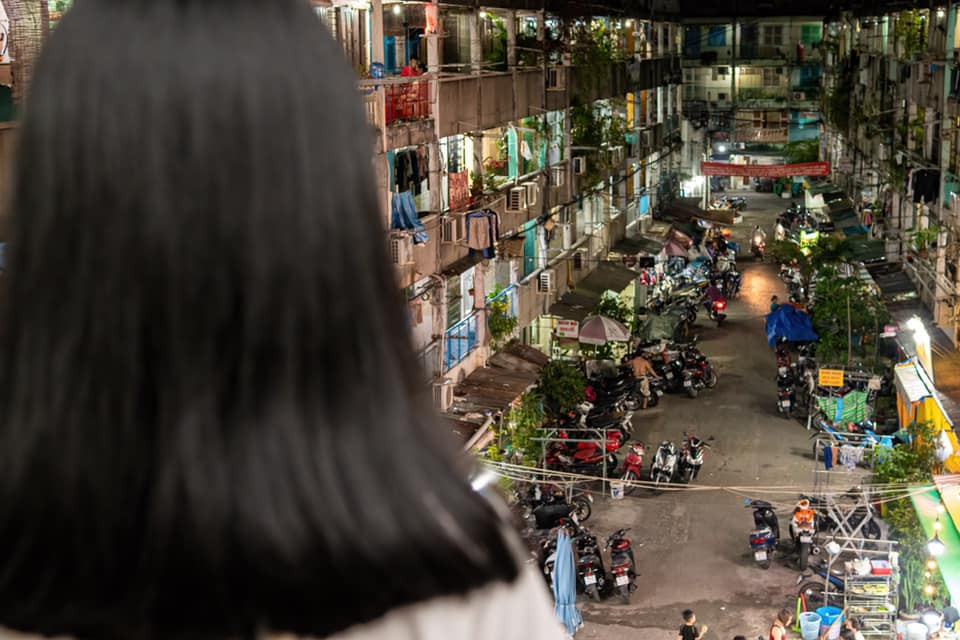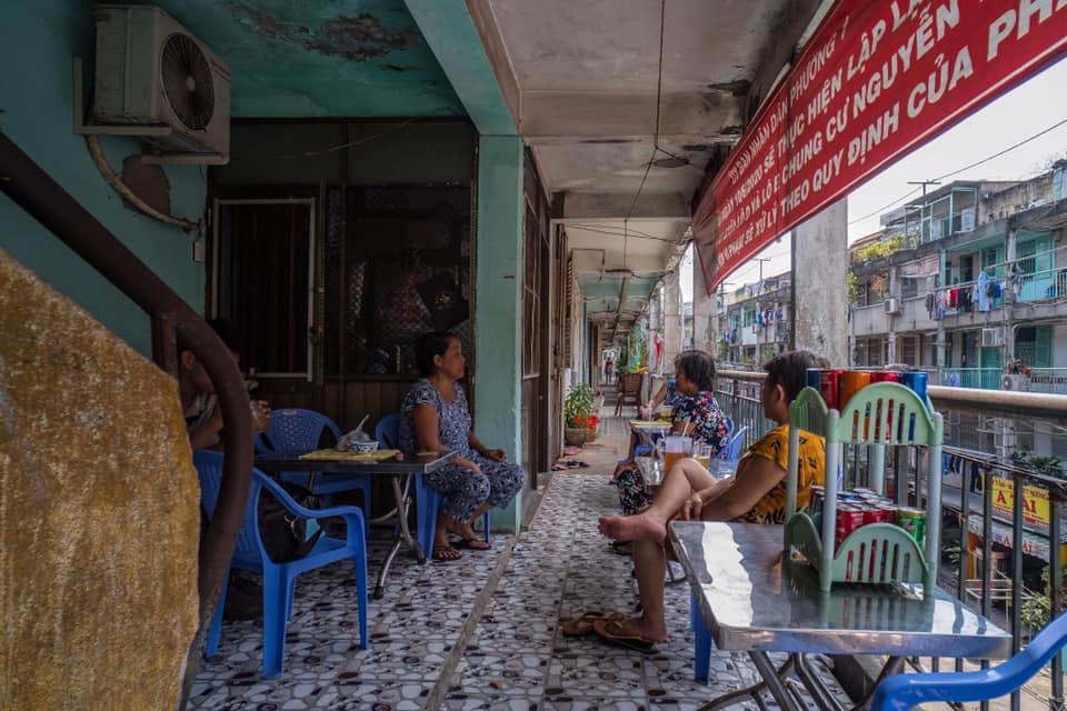 Cảnh sinh hoạt đời thường của người dân tại chung cư Nguyễn Thiện Thuật Quận 3, phản ánh nét văn hóa Sài Gòn