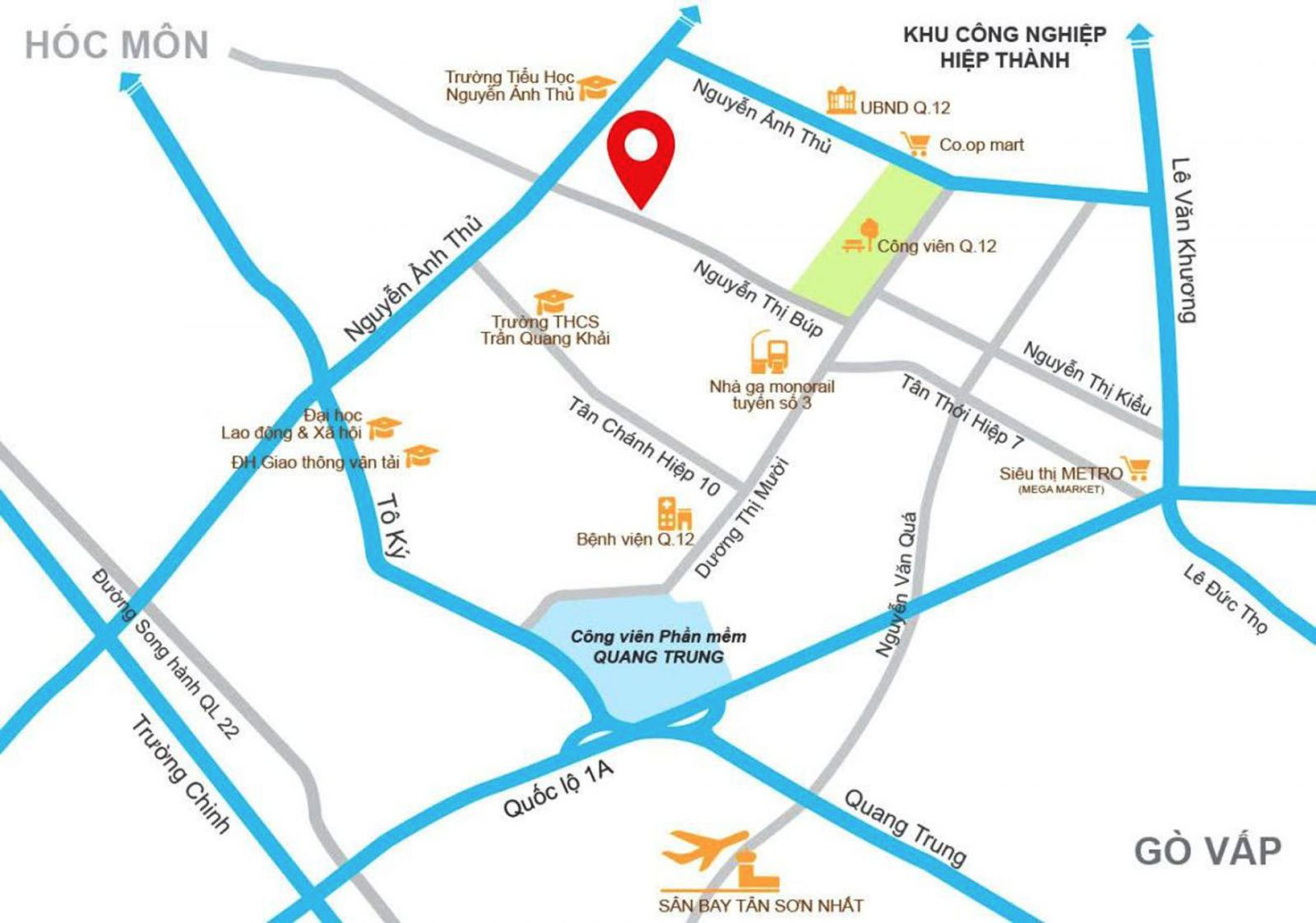 Bản đồ vị trí chiến lược của chung cư Parkland Quận 12 trong khu vực