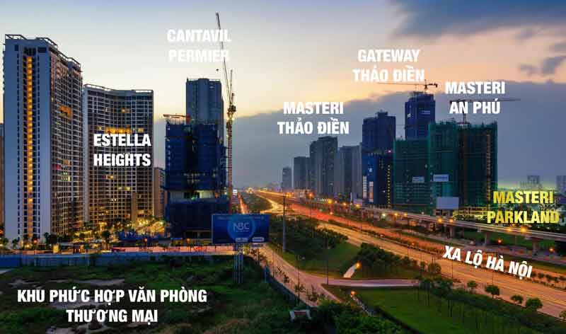 Góc nhìn từ chung cư Parkland Quận 2 và dự án Masteri An Phú, minh họa sự phát triển của khu vực An Phú.