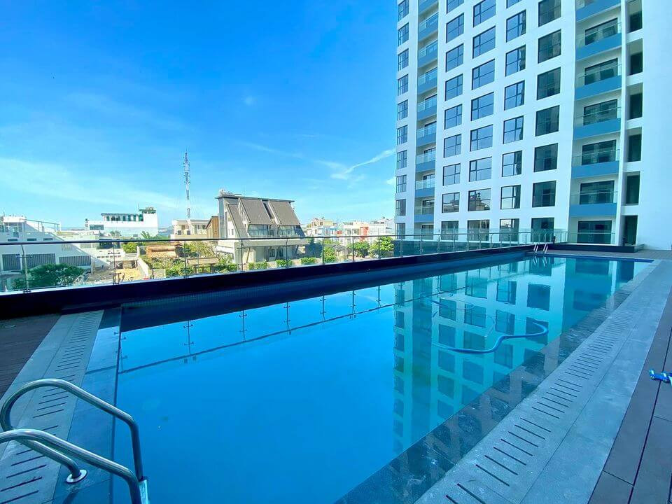 Hồ bơi hiện đại tại tầng 3 chung cư Phú Tài Residence, nhìn từ trên cao