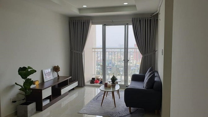 Không gian phòng khách ấm cúng của căn hộ Khuông Việt, ví dụ về nhà ở Tân Phú tầm 2 tỷ