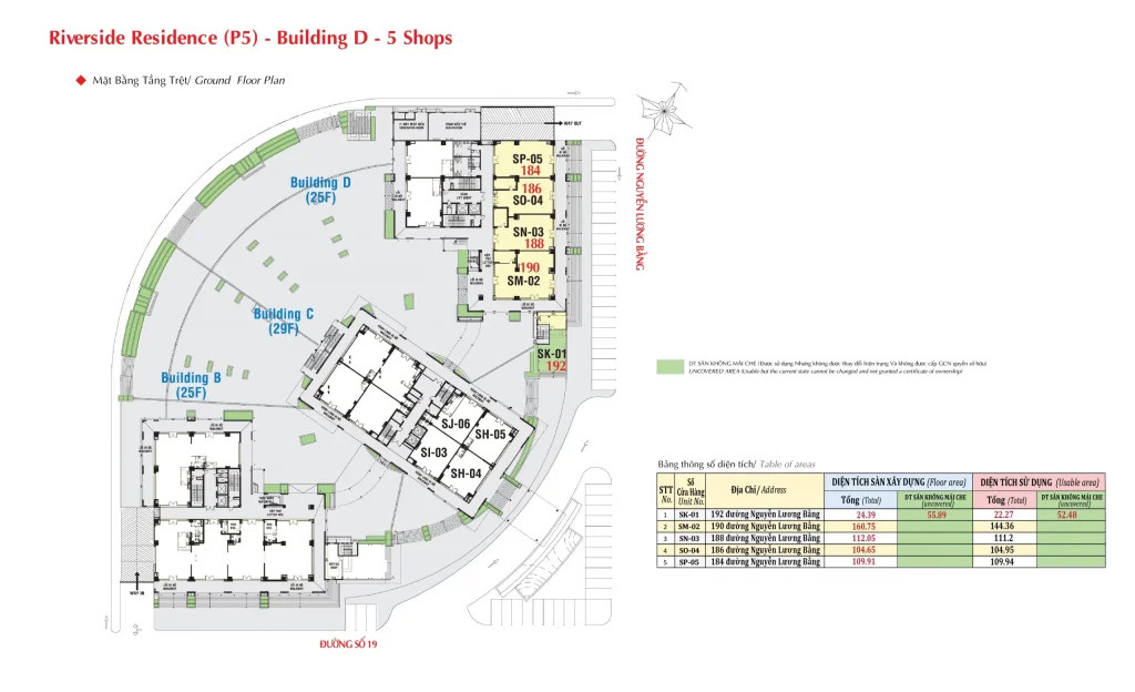 Mặt bằng Shophouse điển hình tại chung cư Riverside Residence Quận 7