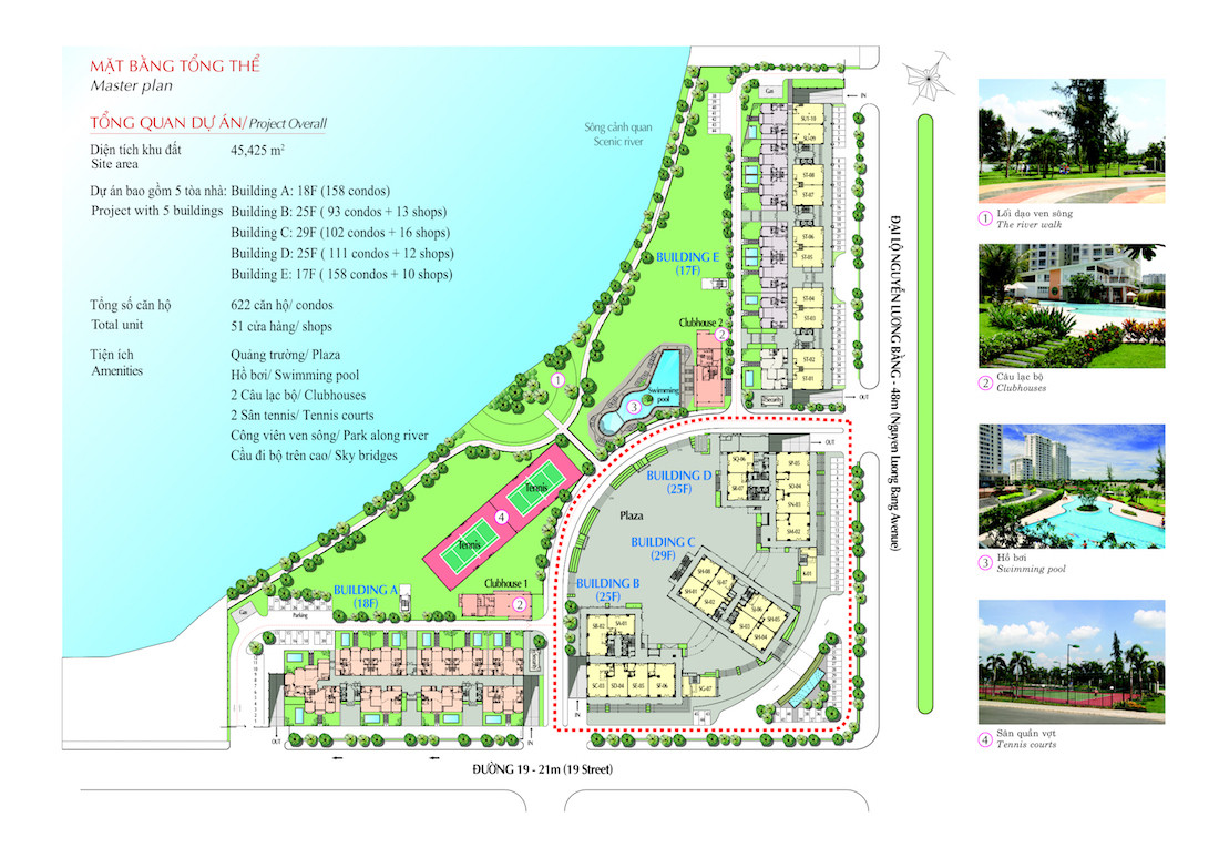Dự án bao gồm 5 tòa tháp căn hộ cao từ 17 đến 29 tầng và 51 căn shophouse Riverside Residence, mang đến sự đa dạng trong lựa chọn an cư và đầu tư kinh doanh. Chủ đầu tư dự án là Công ty TNHH Phát triển Phú Mỹ Hưng, một đơn vị uy tín hàng đầu trong lĩnh vực bất động sản tại Việt Nam, đảm bảo chất lượng công trình và tiến độ bàn giao đúng cam kết. Dự án khởi công vào Quý II/2009 và hoàn thành vào Quý I/2011, nhanh chóng trở thành một điểm nhấn kiến trúc tại khu vực.