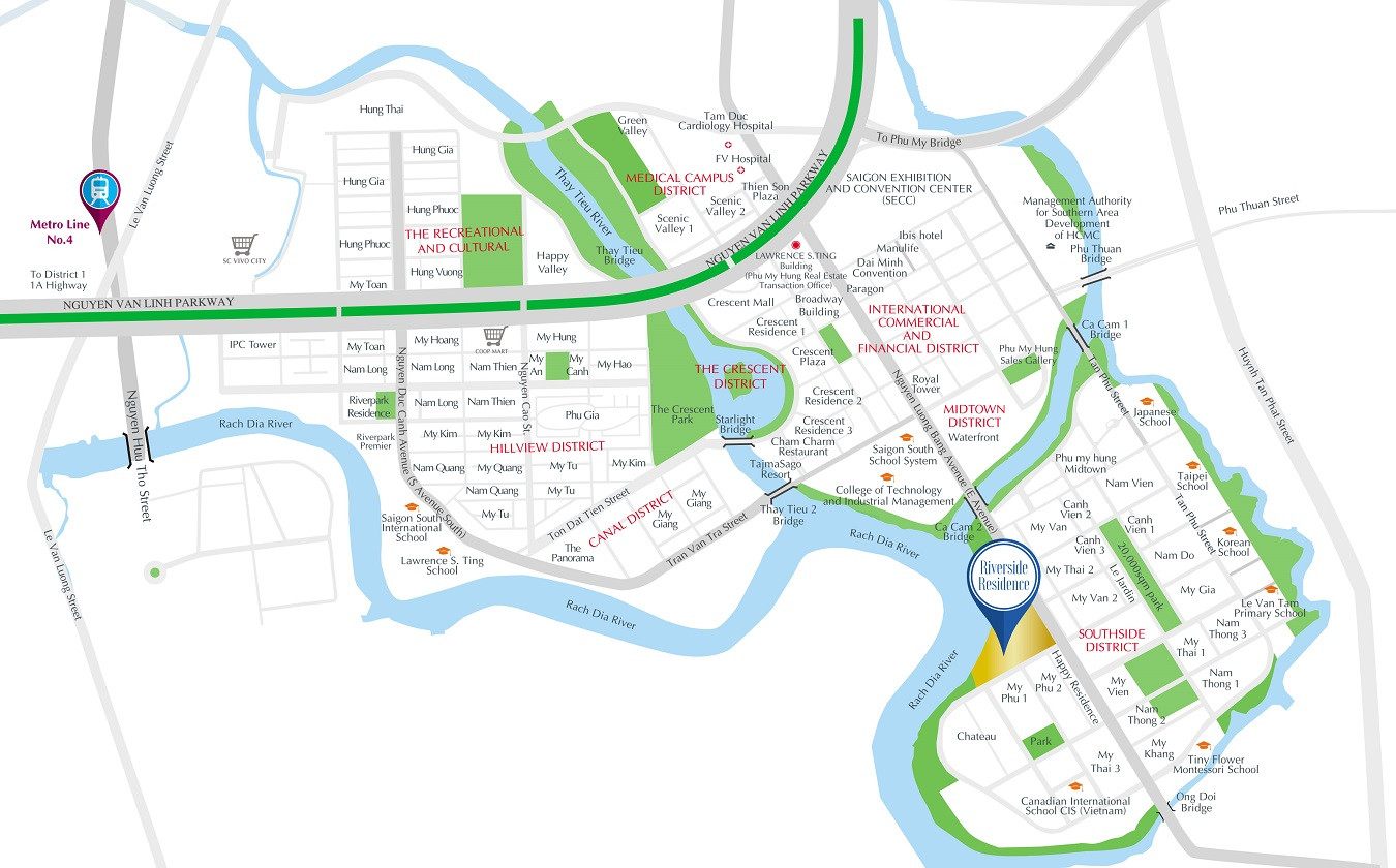 Vị trí chiến lược của chung cư Riverside Residence Quận 7 trên bản đồ