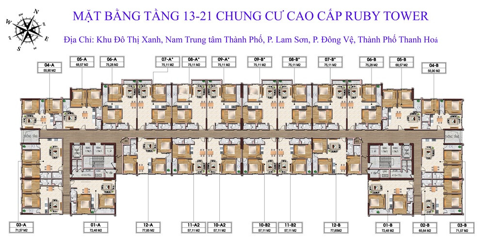 Mặt bằng tầng 13 đến 21 chung cư Ruby Thanh Hóa