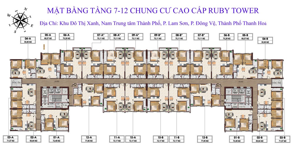 Mặt bằng tầng 7 đến 12 chung cư Ruby Thanh Hóa