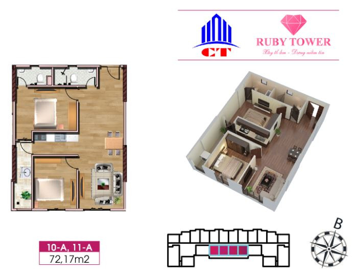 Thiết kế căn hộ 2 phòng ngủ 72.17m2 chung cư Ruby Thanh Hóa