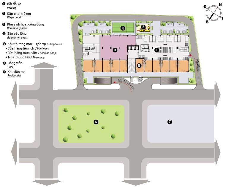 Cư dân tại đây có thể tận hưởng khu sinh hoạt cộng đồng, nơi tổ chức các sự kiện chung và giao lưu kết nối. Khu nhà trẻ hiện đại và khu vui chơi dành cho trẻ em rộng rãi đảm bảo môi trường phát triển toàn diện cho các bé. Đối với nhu cầu mua sắm, các siêu thị mini ngay tại dự án cung cấp đầy đủ nhu yếu phẩm. Ngoài ra, dự án còn có khu vực vui chơi thể thao như sân tennis, phòng GYM và Spa tại tầng trệt, cùng với Coffee Shop, tạo nên một không gian thư giãn và rèn luyện sức khỏe ngay ngưỡng cửa.