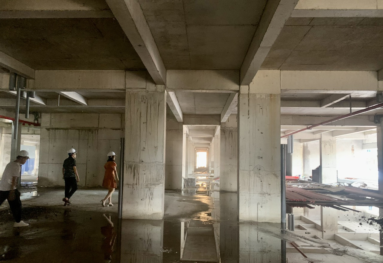 Khu vực hầm để xe của chung cư Sao Hồng Quế Võ đang được hoàn thiện