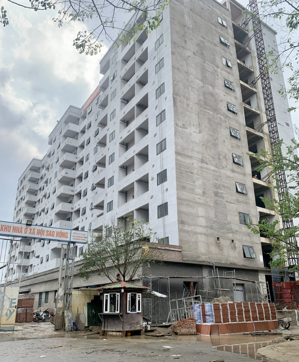Tòa CT3a của chung cư Sao Hồng Quế Võ đã cất nóc và đang hoàn thiện bên trong