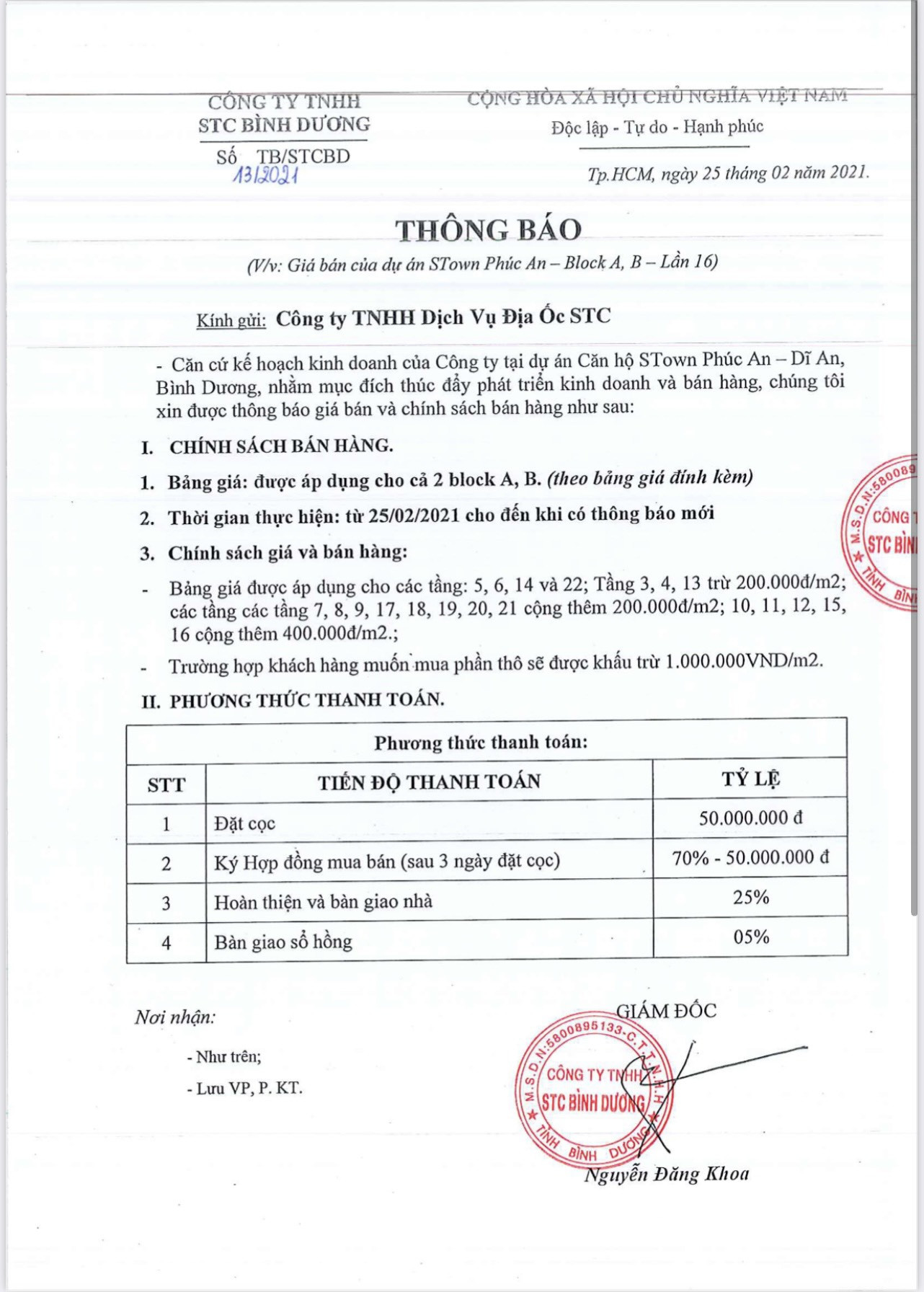 Giá bán và phương thức thanh toán linh hoạt của STown Phúc An