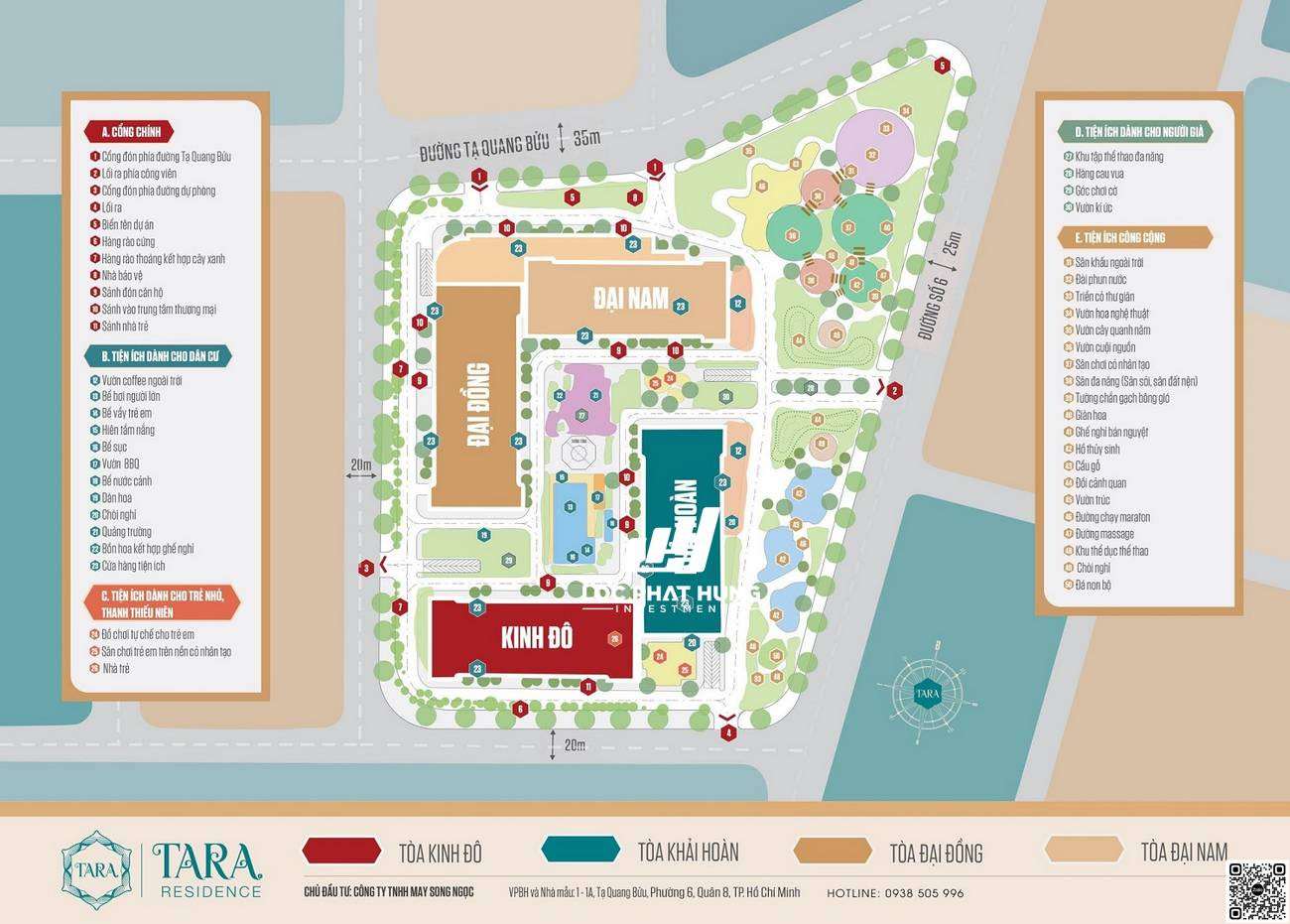 Mặt bằng tổng thể dự án Tara Residence Quận 8Mặt bằng tổng thể tiện ích dự án Tara Residence Quận 8, cho thấy sự bố trí hợp lý của các khối nhà và không gian xanh.