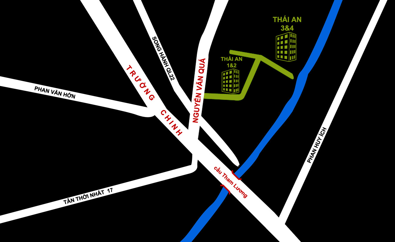 Bản đồ vị trí chiến lược của chung cư Thái An 2 gần cầu Tham Lương