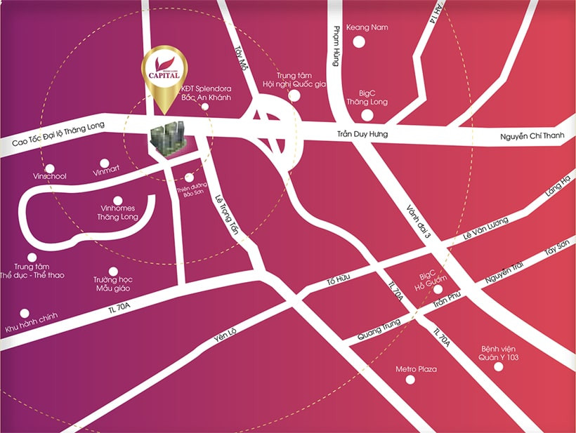 Bản đồ vị trí đắc địa của chung cư Thăng Long Capital