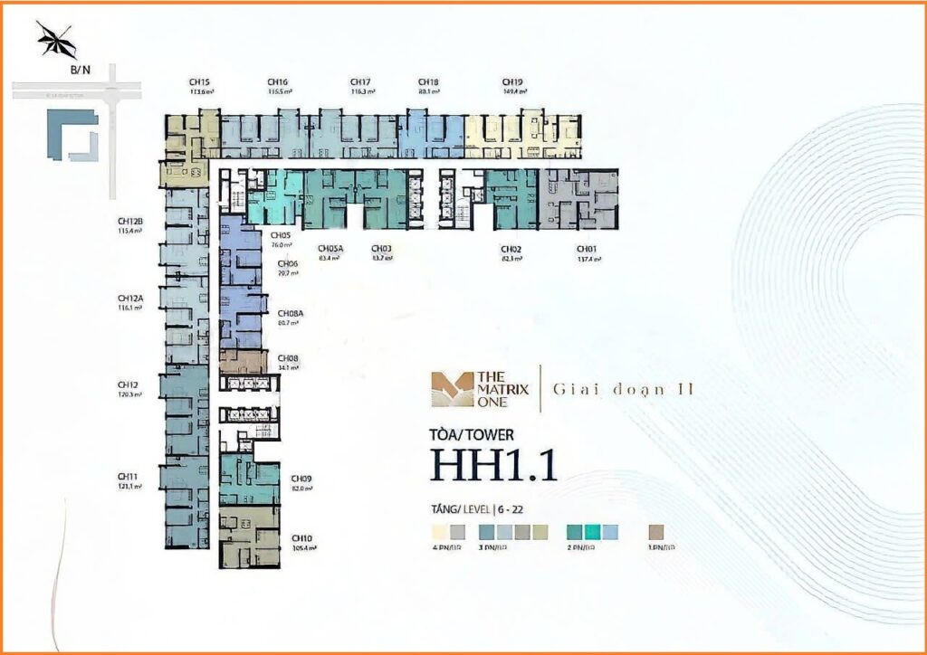 Mặt bằng điển hình tòa HH1.1 của dự án chung cư The Matrix One Premium