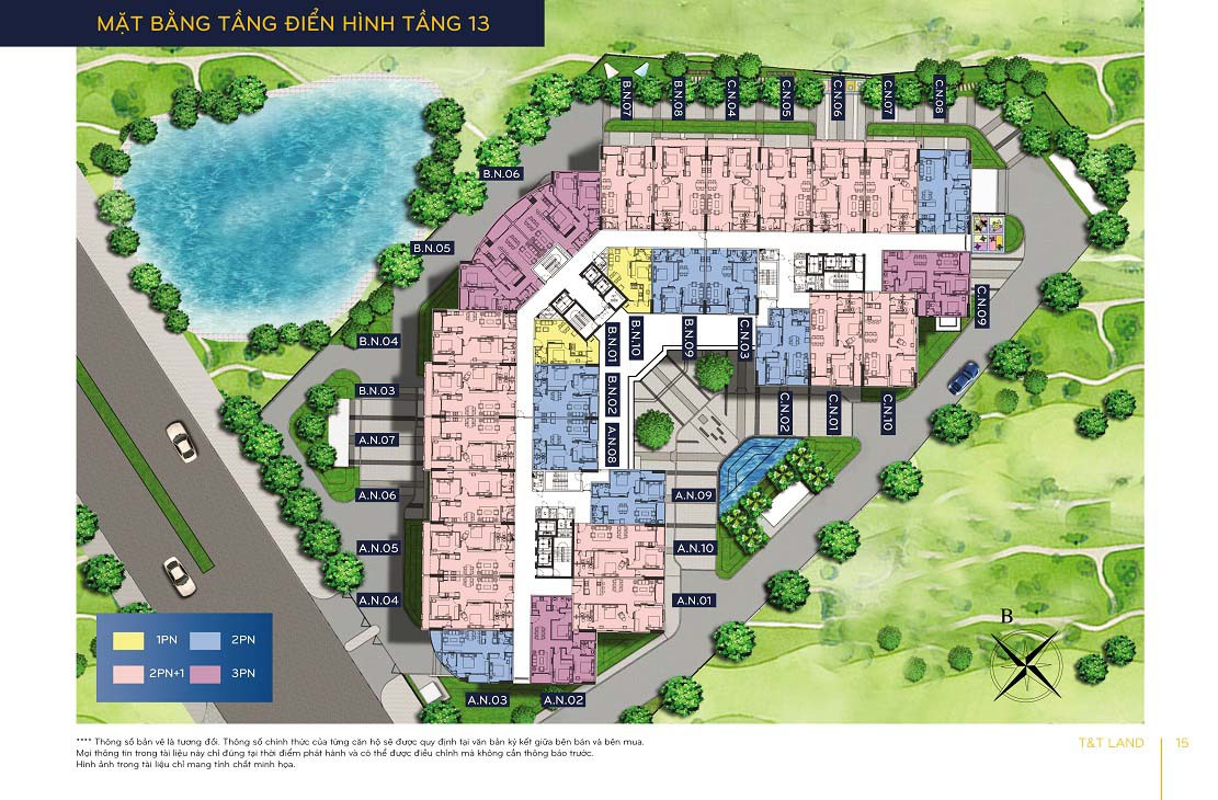Sơ đồ mặt bằng tầng 13 độc đáo của các căn hộ T&T Riverview