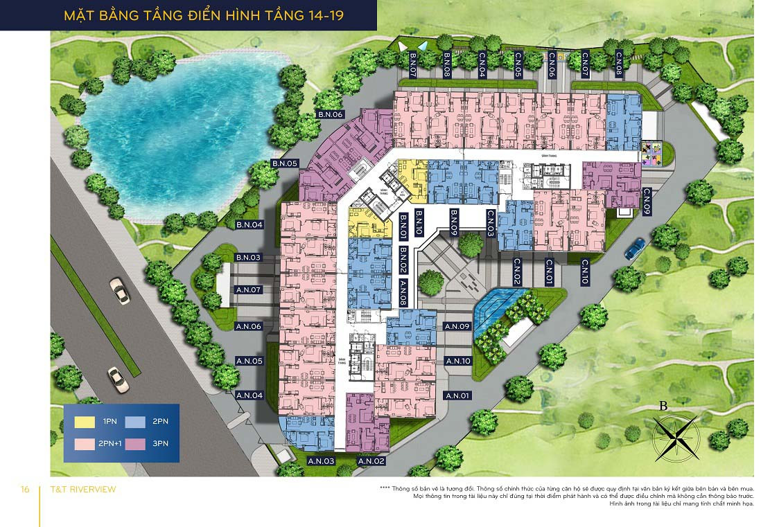 Mặt bằng tầng 14-19 chung cư T&T Riverview với đa dạng căn hộ