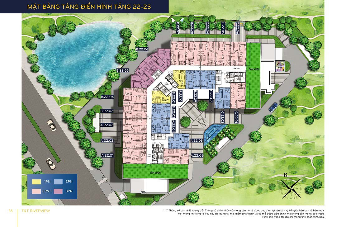 Mặt bằng tầng 22-23 căn hộ T&T Riverview view sông Hồng