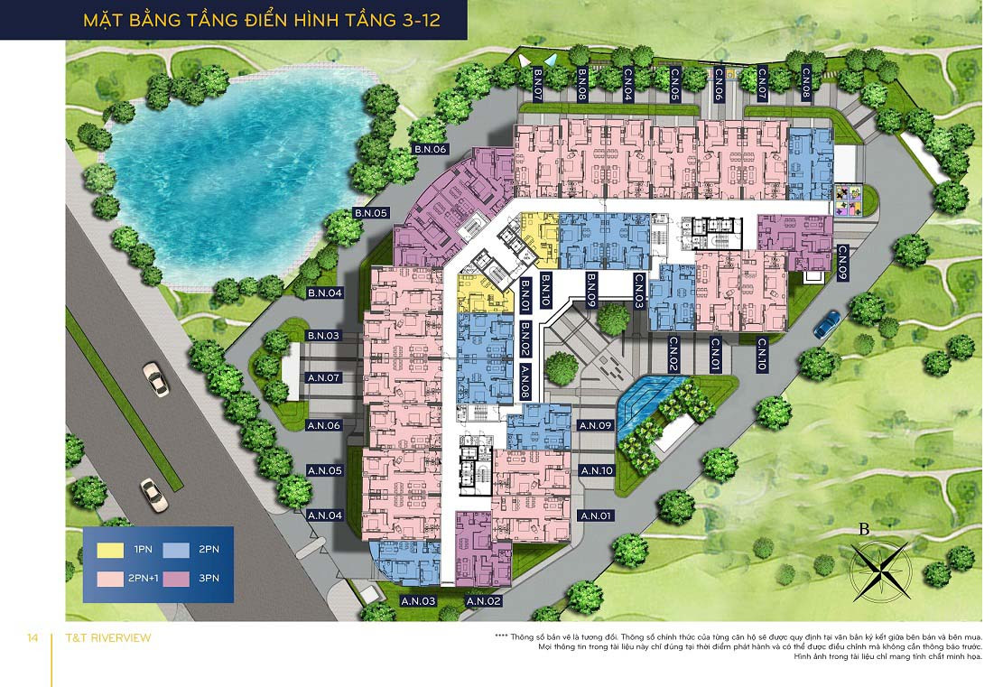 Mặt bằng tầng điển hình 3-12 chung cư T&T Riverview