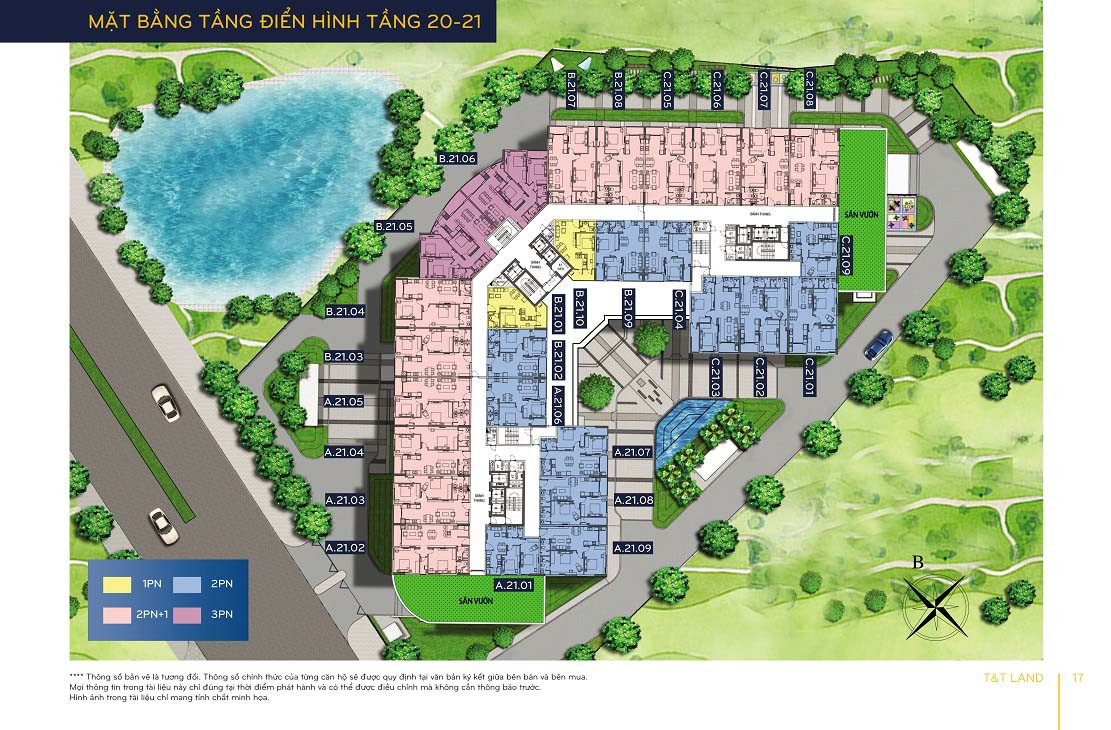 Thiết kế mặt bằng tầng 20-21 của chung cư T&T Riverview