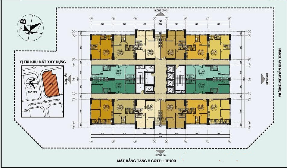 Q3: Dự án VP3 Linh Đàm có bao nhiêu căn hộ và diện tích như thế nào?