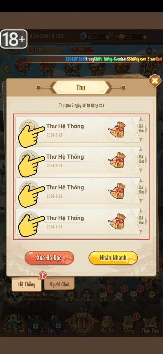 Chọn mục Thư Hệ Thống để nhận quà từ code Tam Quốc MèoChọn mục Thư Hệ Thống để nhận quà từ code Tam Quốc Mèo