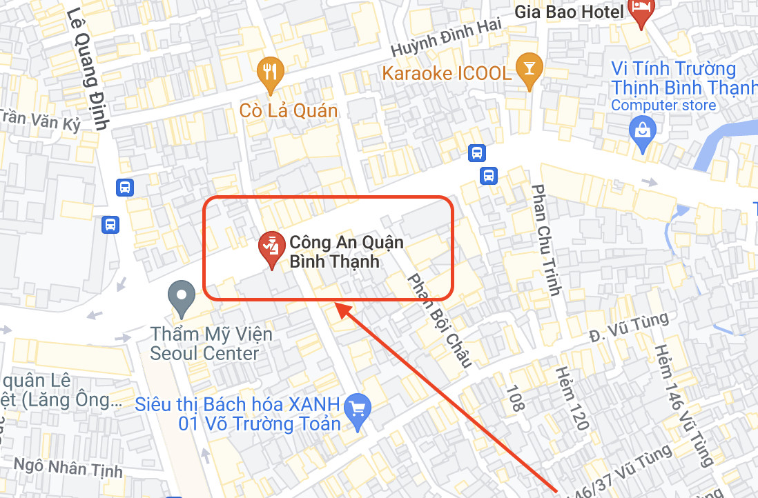 Vị trí của Công an quận Bình Thạnh trên bản đồ Google Maps