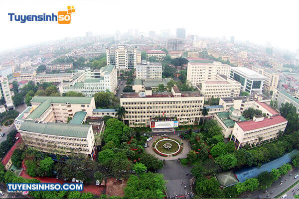 Toàn cảnh khuôn viên rộng lớn của Đại học Sư phạm Hà Nội nhìn từ trên cao, thể hiện quy mô trường