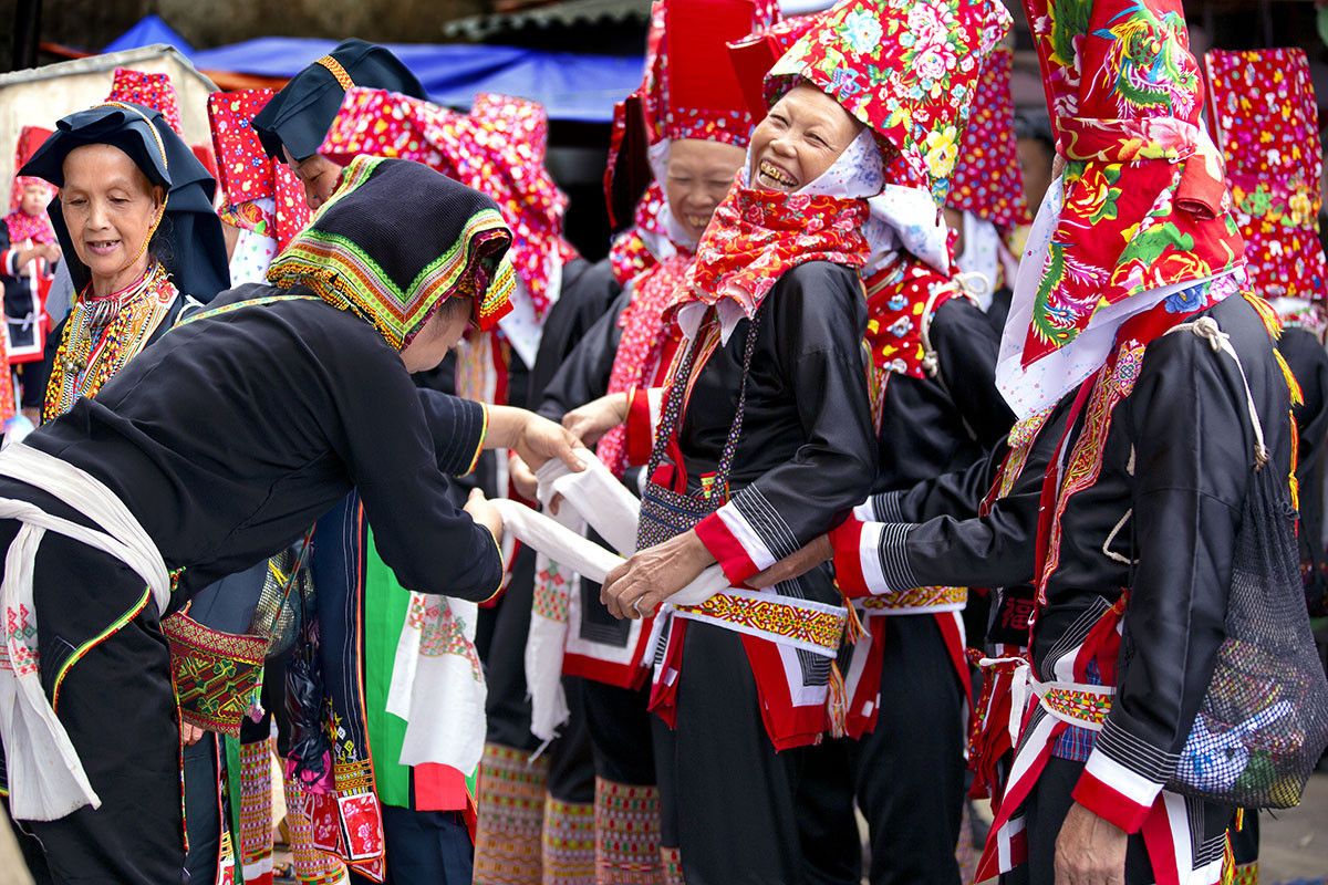 Không gian sinh hoạt của dân tộc Dao tại các chợ phiên miền núi.