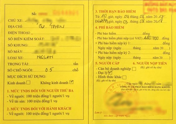 Giấy bảo hiểm bắt buộc TNDS cho xe kinh doanh Grab ở Đà Nẵng
