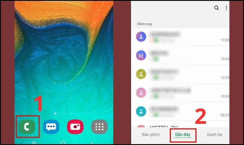 - Bước 1: Mở ứng dụng điện thoại (cuộc gọi) trên thiết bị của bạn, sau đó chọn mục “Gần đây” hoặc “Lịch sử cuộc gọi”.