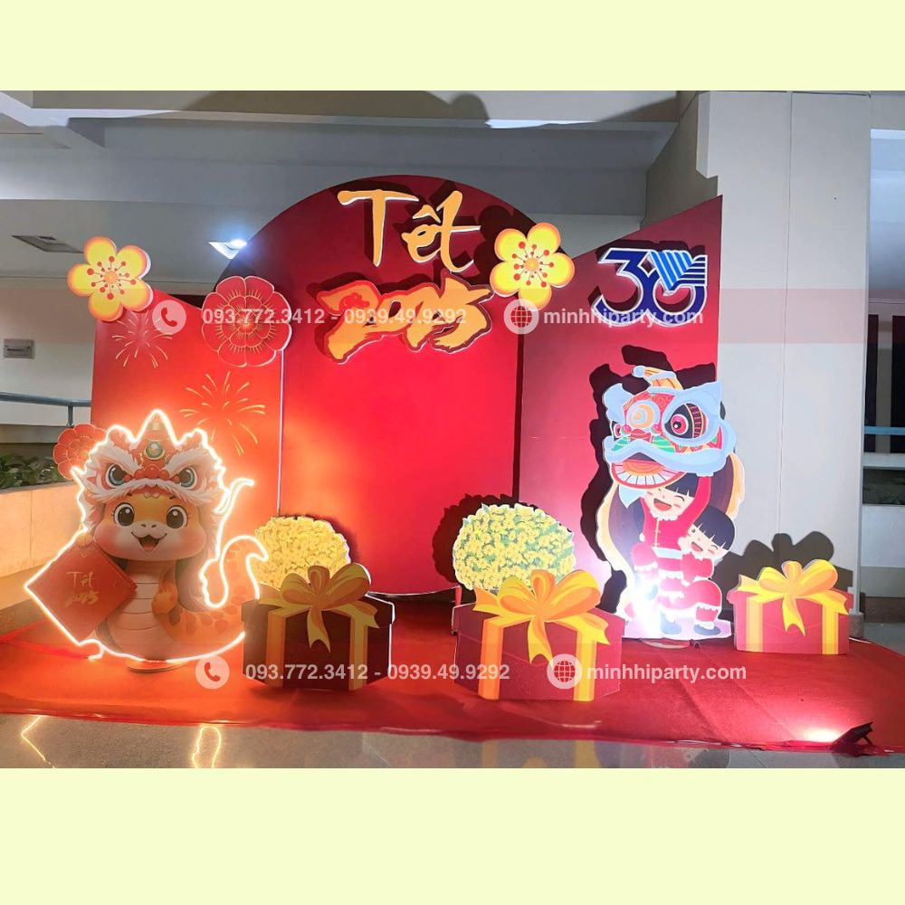 Chất liệu Formex, mica hoặc gỗ công nghiệp thường được ứng dụng để tạo ra các mô hình 3D, chữ nổi “Merry Christmas 2026” hay các biểu tượng Giáng sinh cách điệu. Đèn LED neon với màu sắc rực rỡ và hiệu ứng ánh sáng lung linh là lựa chọn lý tưởng để tăng sự hiện đại và thu hút, đặc biệt khi được lắp đặt tại khu vực quầy lễ tân hoặc các bức tường lớn trong sảnh. Ngoài ra, việc sử dụng các hình ảnh chibi ông già Noel, tuần lộc vui nhộn hoặc tranh hoạt hình mang đến không khí hứng khởi, phù hợp với các gia đình trẻ và tạo điểm nhấn check-in độc đáo cho cư dân.