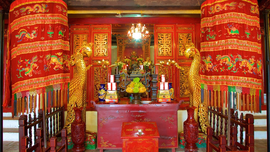 Cấu trúc bên trong Đền Ngọc Sơn được chia thành các gian thờ chính, mỗi nơi mang một ý nghĩa lịch sử và tâm linh riêng biệt. Gian thờ chính được dành để tôn thờ Hưng Đạo Đại Vương Trần Quốc Tuấn, vị anh hùng dân tộc với những chiến công lẫy lừng đã ba lần đánh tan quân Nguyên Mông xâm lược. Bên cạnh đó, gian thờ Văn Xương Đế Quân, vị thần của văn chương, học vấn và công danh, luôn nghi ngút khói hương từ những người con hiếu học và mong cầu sự nghiệp phát triển.