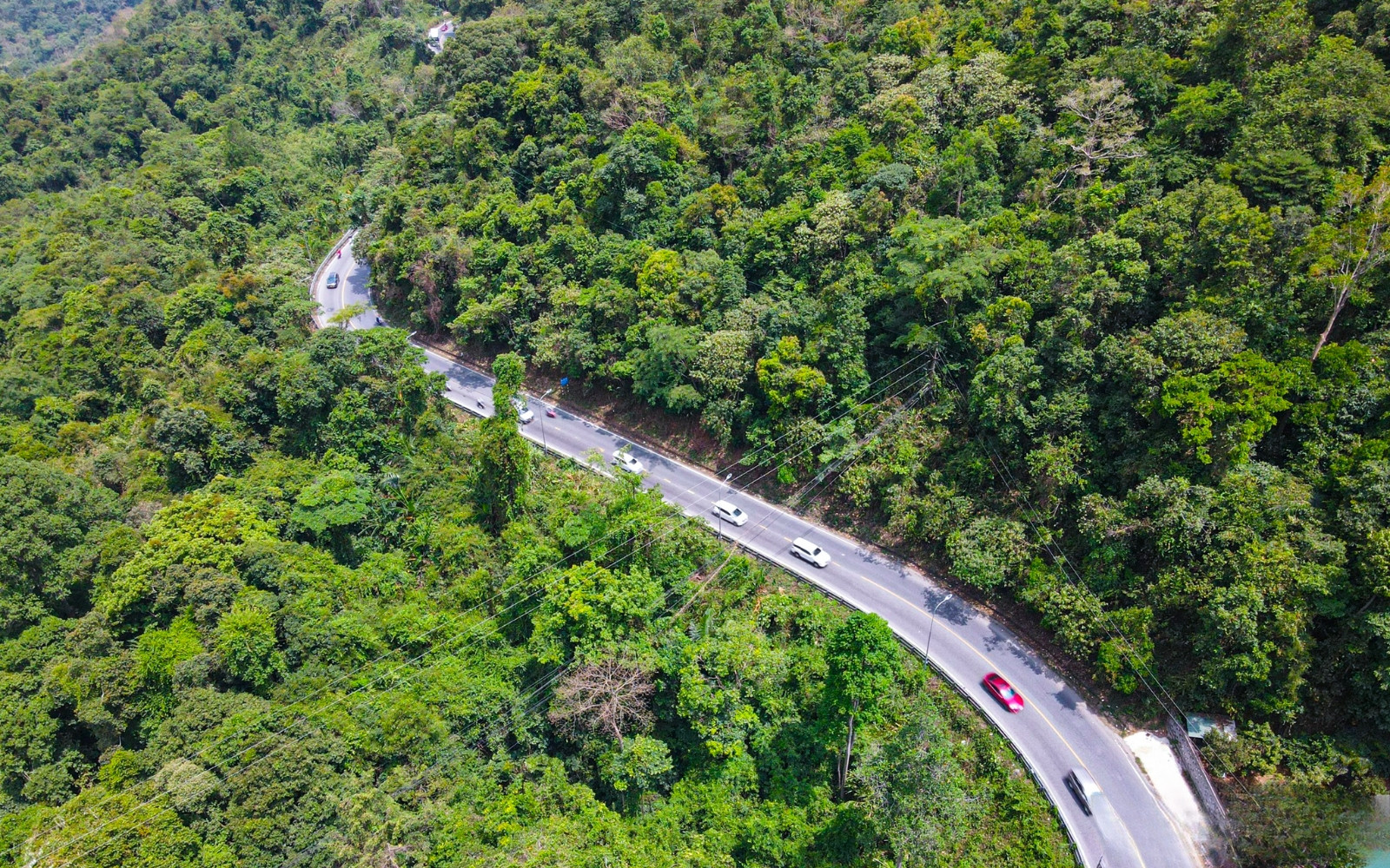 Giao thông tấp nập trên Đèo Bảo Lộc, cảnh quan núi rừng xung quanh
