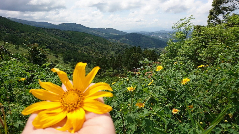 Khi chạm đến chặng cuối của đèo Ngoạn Mục, bạn sẽ đặt chân đến huyện Đơn Dương, Lâm Đồng. Nơi đây mở ra một khung cảnh khác biệt hoàn toàn với những vườn cà phê, hạt tiêu, bơ xanh mướt trải dài. Đặc biệt, nếu có dịp ghé thăm vào khoảng cuối tháng 10, đầu tháng 11, bạn sẽ được chiêm ngưỡng sắc vàng rực rỡ của những triền hoa dã quỳ nở rộ khắp các con đường, tạo nên một bức tranh tuyệt đẹp. Từ đây, bạn có thể dễ dàng tiếp tục hành trình khám phá Đà Lạt mộng mơ và những điểm đến hấp dẫn khác của Lâm Đồng.