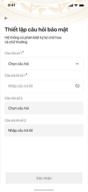Cuối cùng, bạn sẽ thiết lập các câu hỏi bảo mật. Các câu hỏi này sẽ được sử dụng trong trường hợp bạn cần xác minh danh tính hoặc khôi phục tài khoản trong tương lai. Nhập các thông tin ứng dụng yêu cầu và chọn “Xác nhận” để hoàn tất quá trình kích hoạt tài khoản định danh điện tử mức 2.