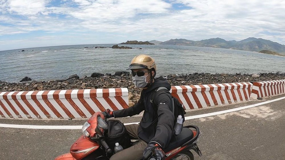 Xe máy đậu trên con đường ven biển hướng đến Dốc Lết