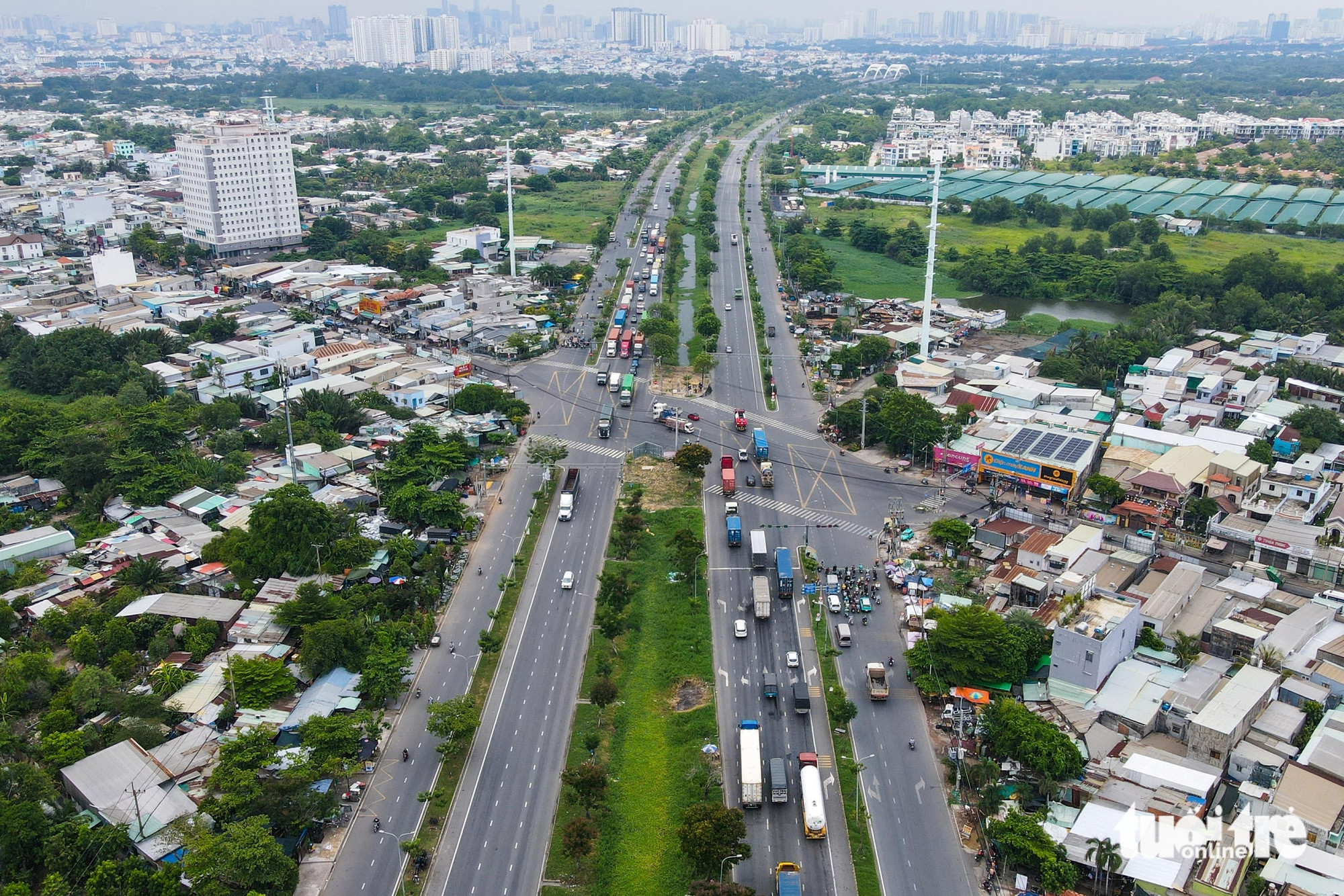 Khung cảnh đô thị khu vực điểm đầu dự án cầu Bình Tiên tại nút giao Phạm Văn Chí